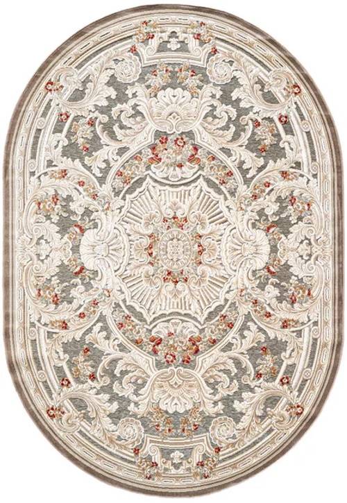 Коротко: «Рельефный ковер из вискозы GENOVA 38388 7292 71 ОВАЛ» (Genova UF oval round, Ragolle) — ковер для прикроватной зоны, дома. материал: вискоза 80% + Акрил 20%, стиль: английский, Классический, цвет: серо-бежевый, ворс: 5 мм, плотность: 1000000 точек/м², основа: джутовая, ориентирован на классическую подачу, страна производства: Бельгия.