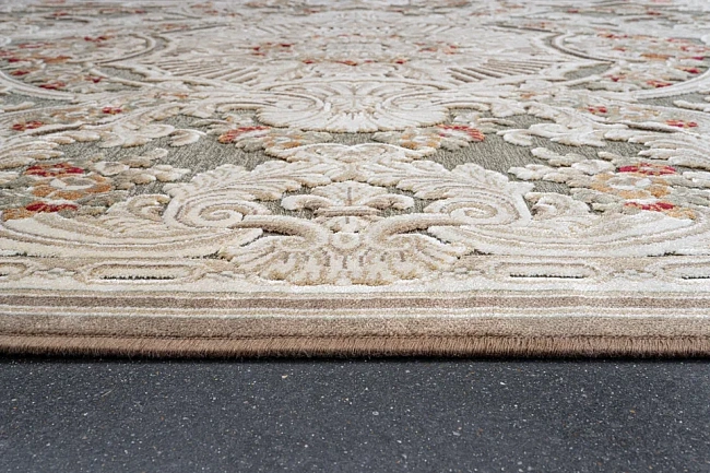 Коротко: «Рельефный ковер из вискозы GENOVA 38388 7292 71» (Genova UF, Ragolle) — ковер. материал: вискоза 80% + Акрил 20%, стиль: в классическом стиле, цвет: серо-бежевый, хамелеон - цвет зависит от освещения, ворс: 5 мм, плотность: 1000000 точек/м², основа: джутовая, ориентирован на классическую подачу, страна производства: Бельгия.