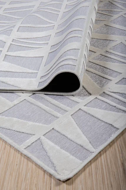 Коротко: «Рельефный ковер из вискозы GENOVA 38537 6969 91» (Genova UF, Ragolle) — ковер для прикроватной зоны, дома. материал: вискоза 80% + Акрил 20%, стиль: современный, Скандинавский, цвет: светло-серый, ворс: 5 мм, плотность: 1000000 точек/м², основа: джутовая, подходит для современного интерьера, страна производства: Бельгия.
