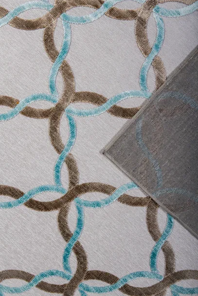 Этот ковер хорошо работает в современном интерьере, где важны чистая визуальная логика, фактура и умеренный декоративный акцент без перегруженности деталями.