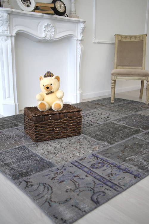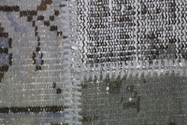 Коротко: «Шерстяной винтажный ковер пэчворк R-8105» (Vintage, Creative Сarpets) — ковер для дома, гостиной. материал: шерсть, стиль: классический, Лофт, Модерн, Винтажный, Бохо, цвет: серый, ворс: 5 мм, плотность: 1000000 точек/м², основа: тканевая, ориентирован на классическую подачу, страна производства: Турция.