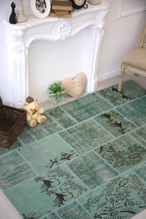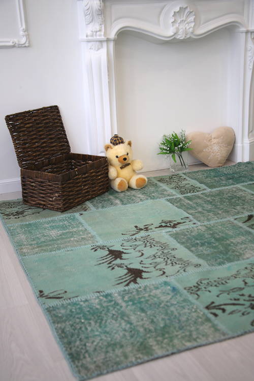 Коротко: «Шерстяной винтажный ковер пэчворк R-8900» (Vintage, Creative Сarpets) — ковер для дома, гостиной. материал: шерсть, стиль: классический, Лофт, Модерн, Винтажный, цвет: зеленый, ворс: 5 мм, плотность: 1000000 точек/м², основа: тканевая, ориентирован на классическую подачу, страна производства: Турция.