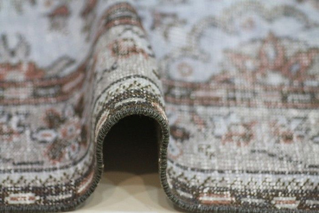 Коротко: «Шерстяной винтажный ковер R-4103» (Vintage, Creative Сarpets) — ковер для дома, гостиной. материал: шерсть, стиль: современный, Классический, Лофт, Модерн, Винтажный, цвет: бежево-голубой, ворс: 5 мм, плотность: 1000000 точек/м², основа: джутовая, ориентирован на классическую подачу, страна производства: Турция.