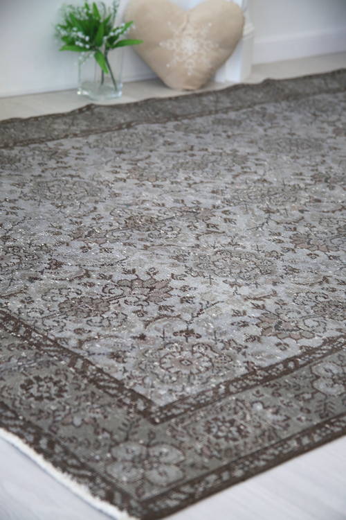 Коротко: «Шерстяной винтажный ковер R-4474» (Vintage, Creative Сarpets) — ковер для дома, гостиной. материал: шерсть, стиль: современный, Классический, Лофт, Модерн, Винтажный, цвет: серый, ворс: 5 мм, плотность: 1000000 точек/м², основа: джутовая, ориентирован на классическую подачу, страна производства: Турция.